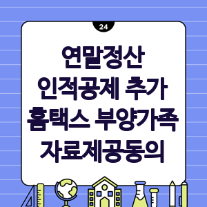 - 부양가족 자료제공 동의: 홈택스에서 부양가족 자료제공 동의를 신청하여 공제 혜택을 받으세요.